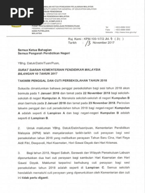 Pekeliling Cuti Perayaan Kpm 2018 Pdf