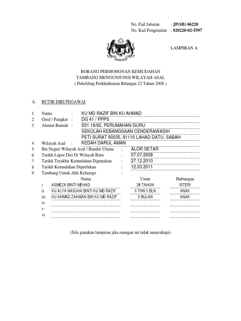 Kew Borang Permohonan Kemudahan Tambang Mengunjungi Wilayah Asal