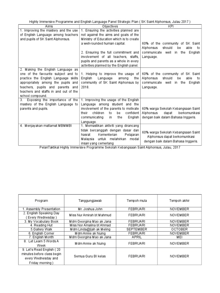 Pelan Strategik Highly Immersive Programme Sekolah Kebangsaan Saint Alphonsus
