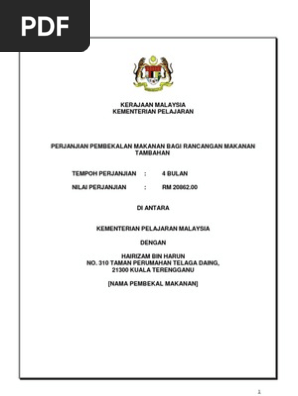 Perjanjian Pembekal Bahan Basah Kering Prasekolah