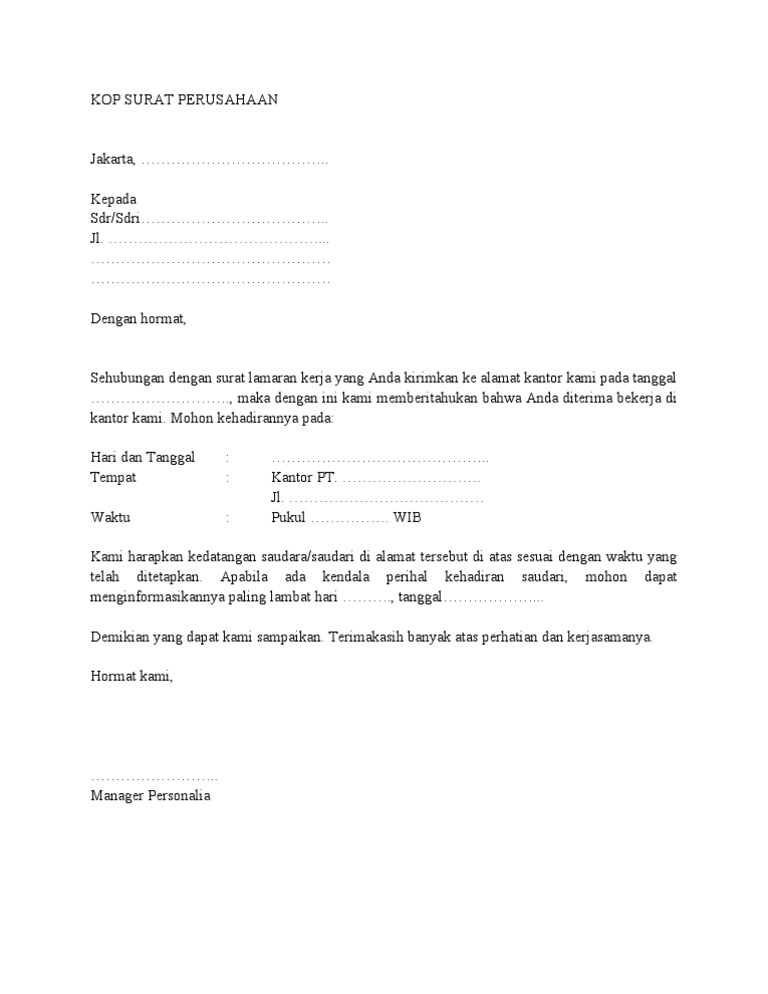 Contoh Surat Terima Tawaran Kerja