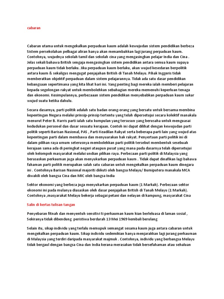 Luar Biasa Karangan Perpaduan Kaum Di Malaysia Erlie Decor