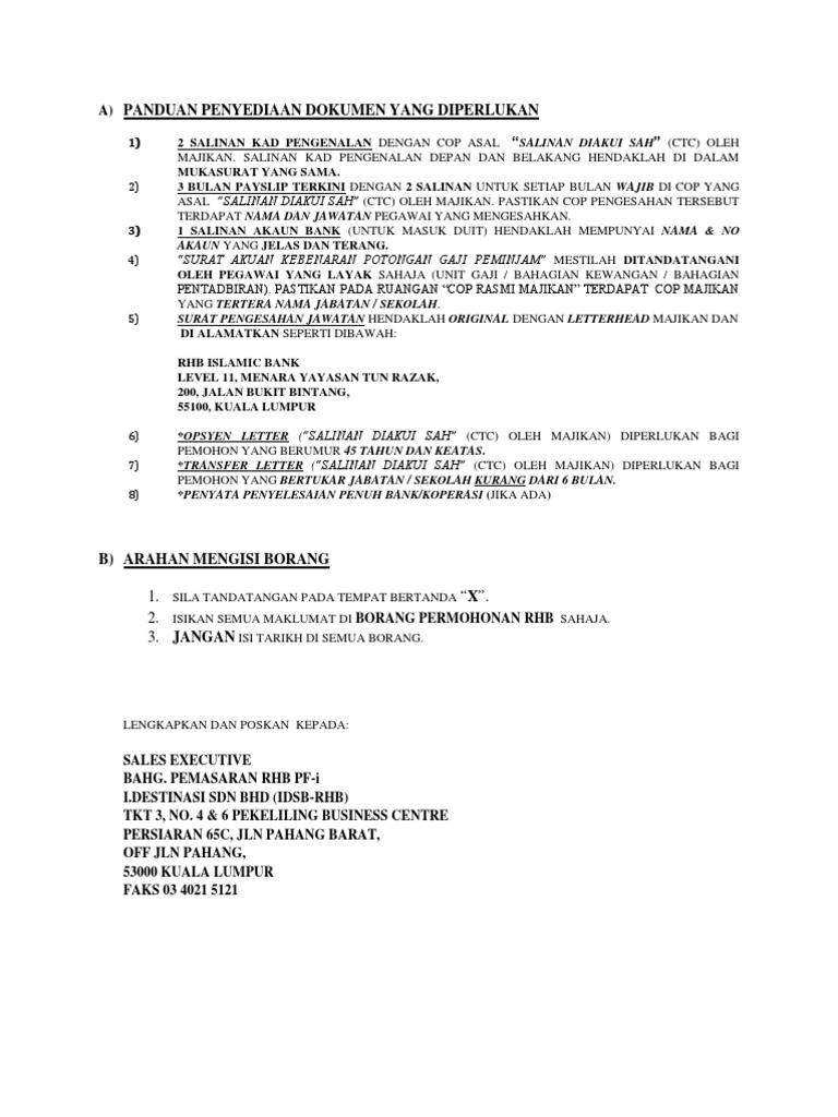 Peraturan Am Mengisi Dokumen Perjanjian