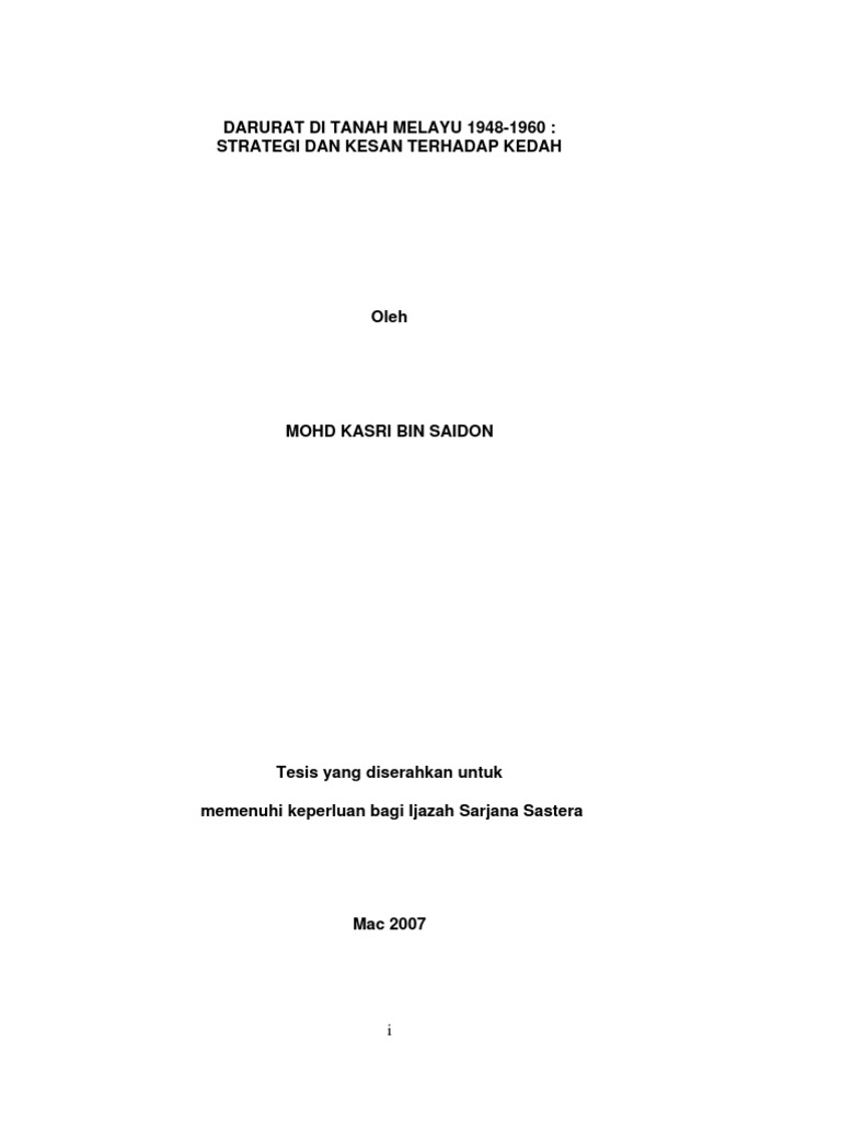 Darurat Di Tanah Melayu 1948 1960 Strategi Dan Darurat Di Tanah Melayu 1948 1960 Strategi Dan Kesan Pdf Document