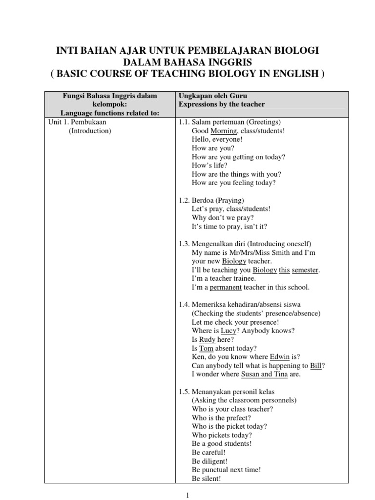 Teaching Biology In English
