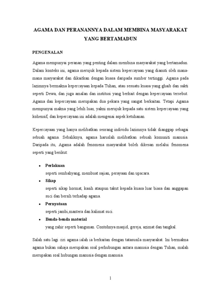 Agama Dan Peranannya Dalam Membina Masyarakat Yang Bertamadun