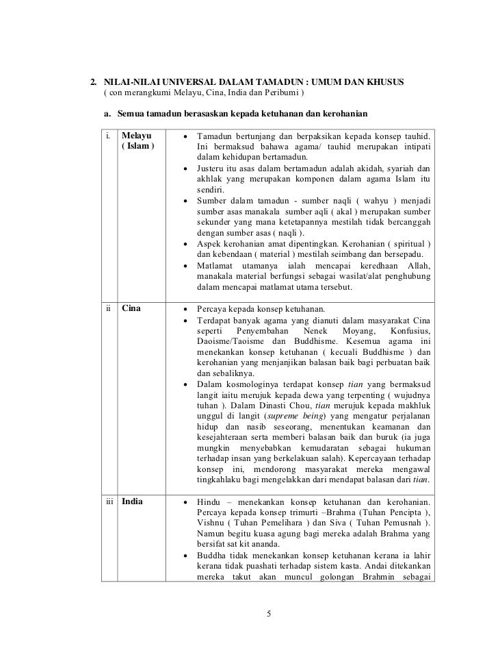 Peranan agama dalam pembinaan tamadun yang berasaskan bangsa melayu cina dan india. Ajaran konfusianisme memberi banyak implikasi. Dalam membina peradaban bangsa malaysia menjelang tahun 2020 apa yang pasti ialah budaya dan nilai luhur yang wujud dalam agama islam dan orang melayu perlu diperkasakan dan dijadikan sebagai teras kepada pembentukan dan pembinaan bangsa malaysia dan negara malaysia. Agama pada lazimnya bermakna kepercayaan kepada tuhan atau sesuatu kuasa yang ghaib dan sakti seperti dewa dan juga amalan dan institusi yang berkait dengan. Kerajaan dan sistem pemerintahan menjadi tunggak sebuah masyarakat dan memainkan peranan penting dalam pembinaan tamadun.