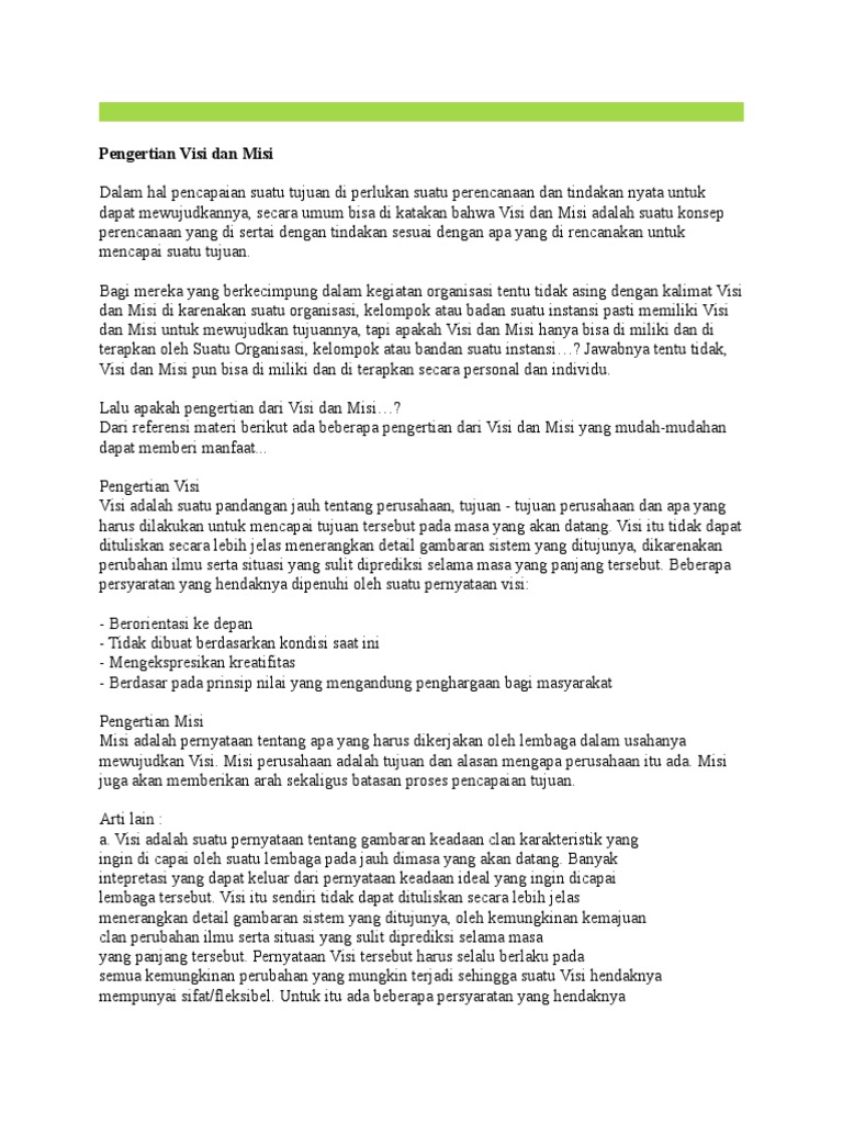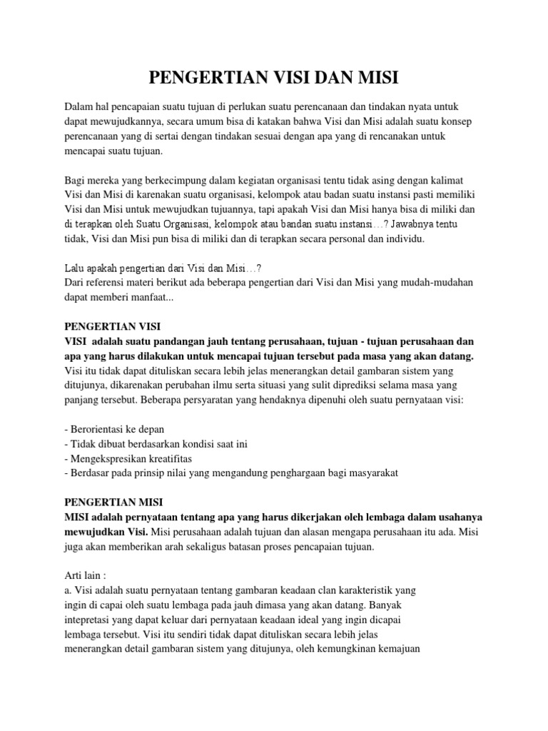 Pengertian Visi Dan Misi Docx