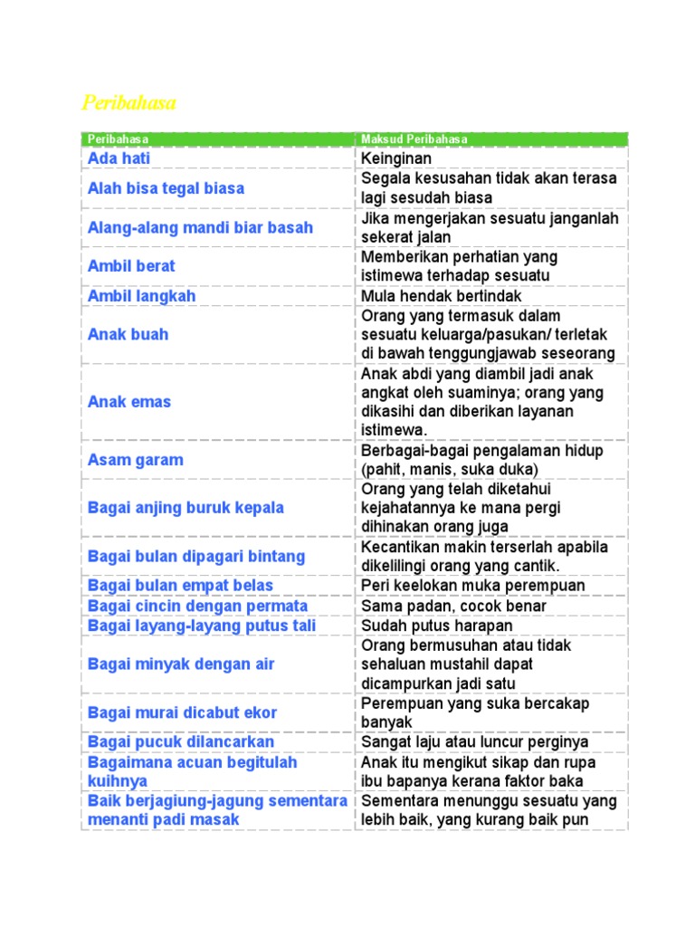 Senarai Peribahasa Dalam Buku Teks Tingkatan 1