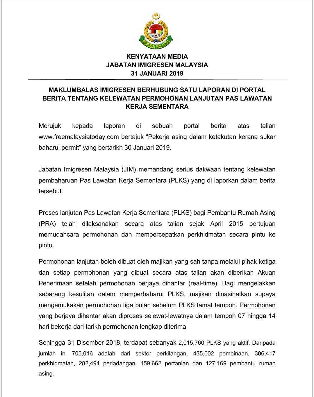 Imigresen Malaysia V Twitter Maklumbalas Imigresen Berhubung Satu Laporan Di Portal Berita Tentang Kelewatan Permohonan Lanjutan Pas Lawatan Kerja Sementara Imigresen Jim Https T Co Jwqzxzpysl