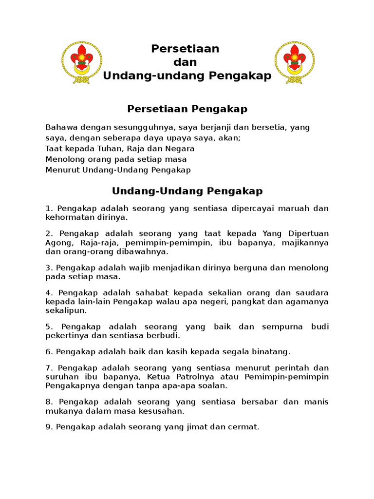 Perkhemahan Pelantikan Pengakap Kelana Negeri Persetiaan Pengakap Undang Undang Pengakap Pdf Document
