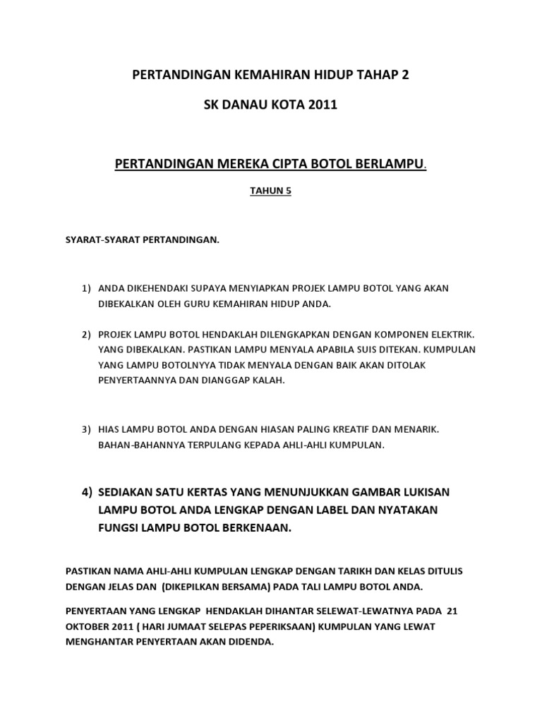Syarat Syarat Pertandingan Senarai Nama Peserta Berkumpulan