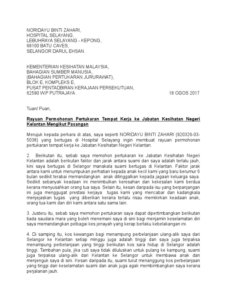 Surat Rasmi Permohonan Kerja Jururawat Jalan Permata 1