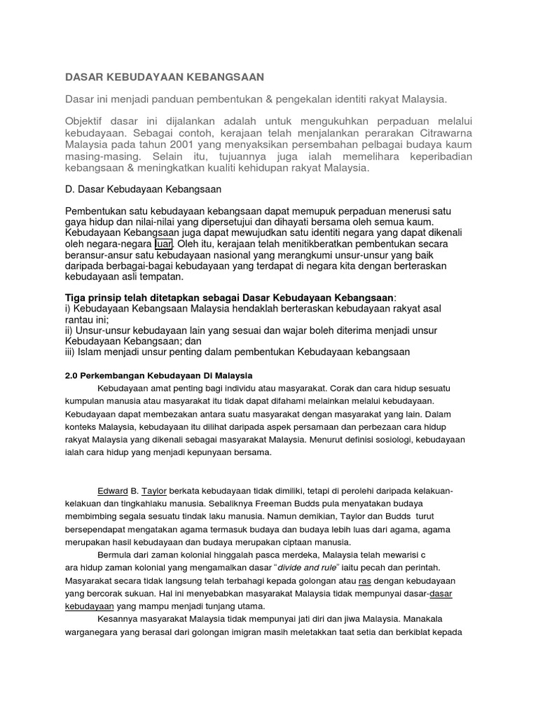 Tahun 6 Kssr Dasar Kebudayaan Kebangsaan Tingkatan 5 Kbsm