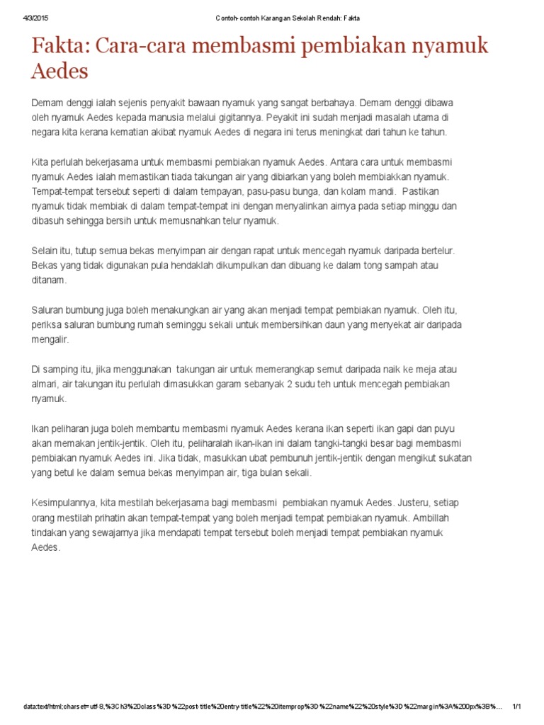 Karangan Mencegah Nyamuk Aedes Docx Document
