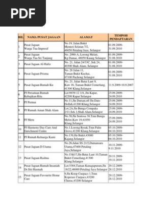Senarai Pusat Jagaan Berdaftar Wt
