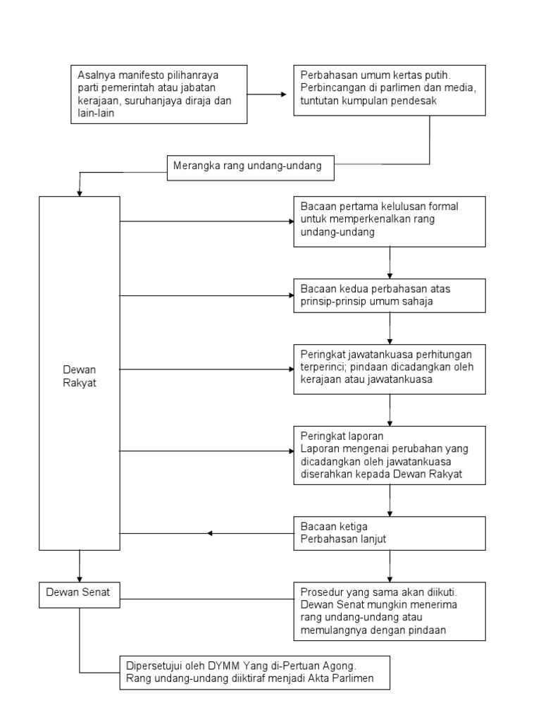 Rang undang undang. Suatu rang undang undang adalah cadangan pembentukan atau penggubalan undang undang baru yang dibentuk melalui perundangan yang masih belum diluluskan dan diberikan perkenan diraja selepas rang undang undang diluluskan barulah ia menjadi akta. Turut dibawa ke persidangan akan datang ialah rang undang undang racun pindaan 2019 dan rang undang undang koperasi pindaan 2020. Rang undang undang itu bertujuan meminda peruntukan berhubung kuasa mengisytiharkan kawasan keselamatan dengan memberi kuasa itu kepada yang di pertuan agong dan susulan itu pindaan seksyen 18 akta 776 tidak akan menjejaskan peranan mkn sebagai penasihat dalam perisytiharan mana mana kawasan keselamatan. Tetapi dalam penggunaan popular kedua dua istilah ini sering dikelirukan rang undang undang mempunyai penaja dan kadangkala lebih dari satu orang.