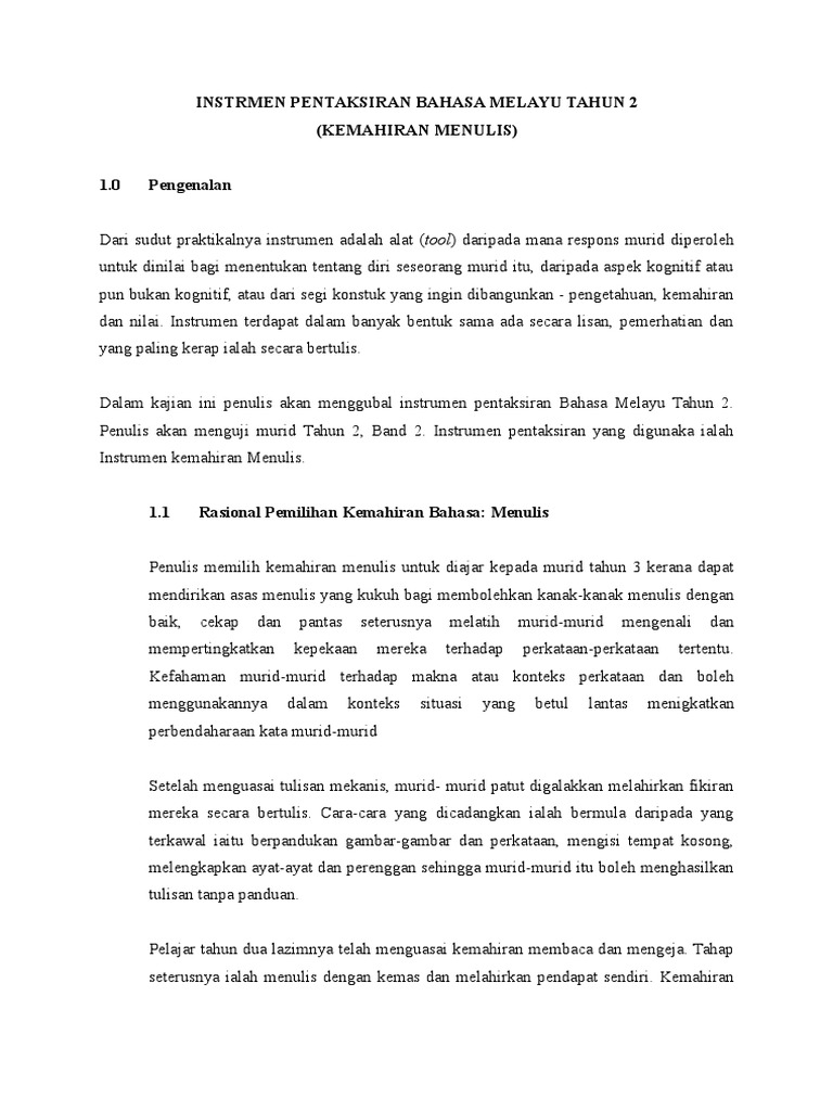 Instrumen Pentaksiran Bahasa Melayu Tahun 2 Docx