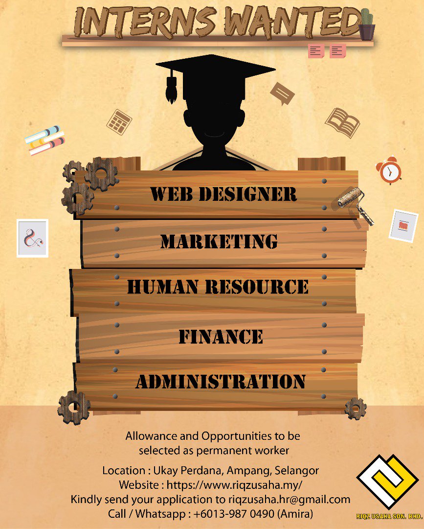 Riqzusaha Hr A Twitter Internship Programme In Riqz Usaha Sdn Bhd Web Graphic Designer Marketing Human Resource Finance Administration Benefits Allowances Provided Career Opportunities After Internship
