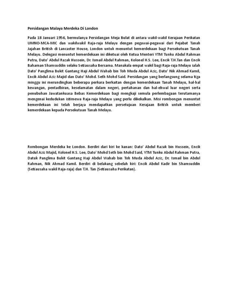 Anggota Rombongan Perundingan Menuntut Kemerdekaan Tanah Melayu Yang Telah Berkunjung Ke London Pada 1 Januari 1956 Adalah Tunku Abd Rahman Putra Alhaj