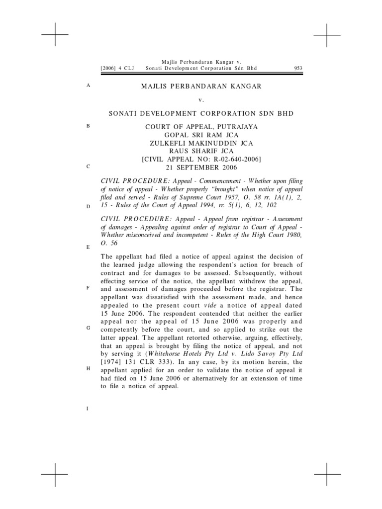 Majlis Perbandaran Kangar V Sonati Development Corp Sdn Bhd Appeal Court Of Appeal Of Singapore