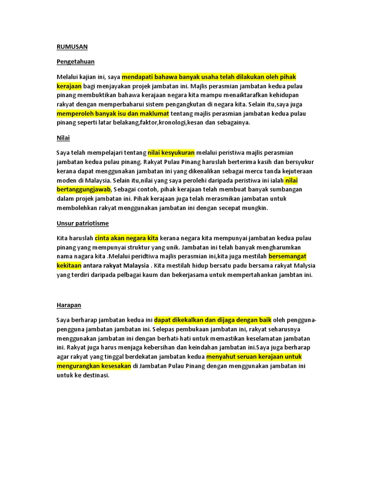 Rumusan Pengetahuan Nilai Unsur Unsur Patriotisme Dan Harapan 2018