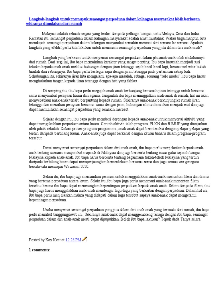Karangan Cara Cara Memupuk Semangat Perpaduan Dalam Kalangan Pelajar