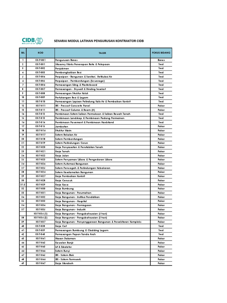 Cidb Jadual Senarai Pengkhususan Baru Pdf