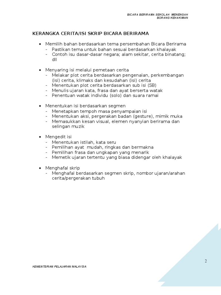 Kerangka Cerita Isi Skrip Bicara Berirama