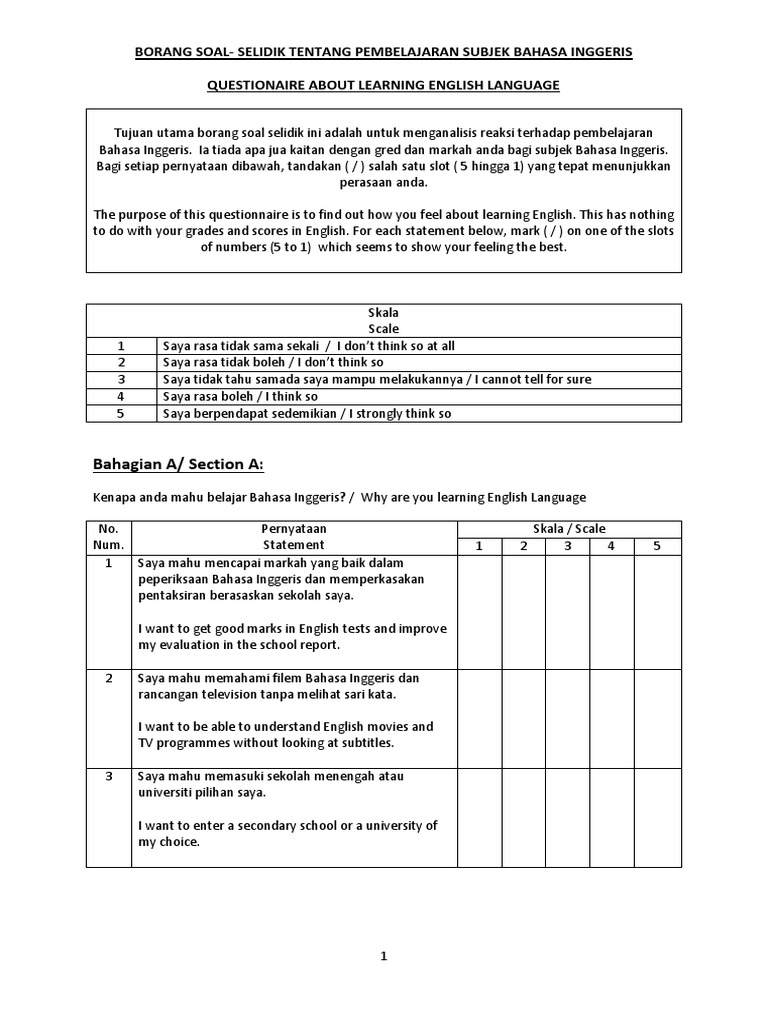 Contoh Borang Soal Selidik In English Obtenez Livre