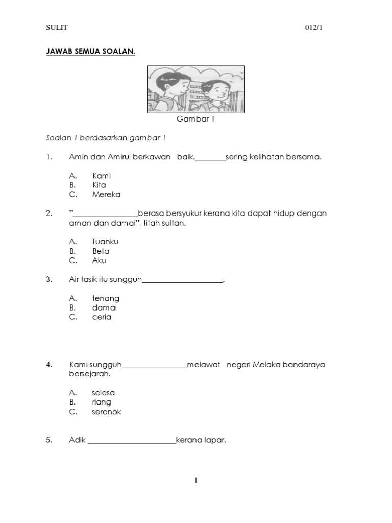 Soalan Bahasa Melayu Pemahaman Tahun 5 Kssr Terengganu T