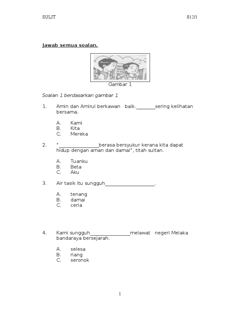 Contoh Kertas Peperiksaan Bahasa Malaysia Tahun 3 Kertas 1