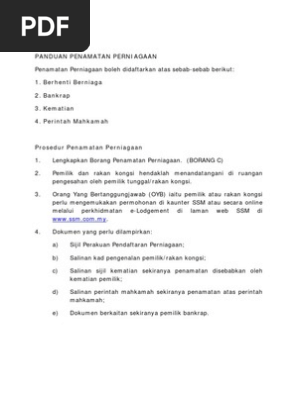 Http Www Ssm Com My Bm Pages Services Registration Of Business Rob Registration Panduan Penamatan Perniagaan New Pdf