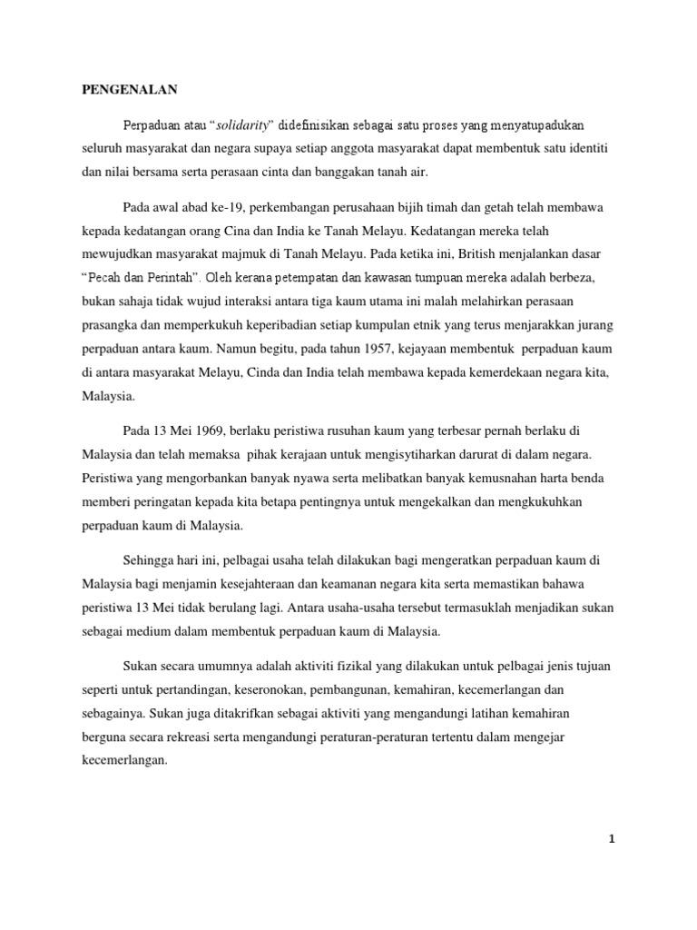 Contoh Karangan Sukan Ke Arah Perpaduan Pt3
