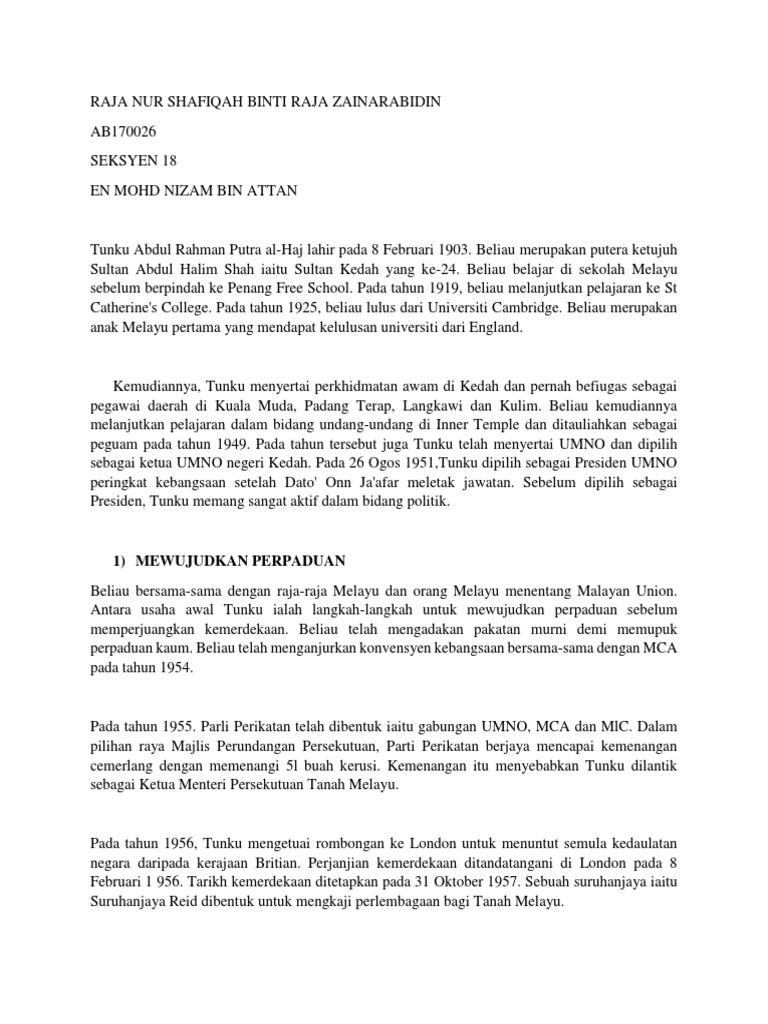 Latar Belakang Tunku Abdul Rahman Docx Course Hero