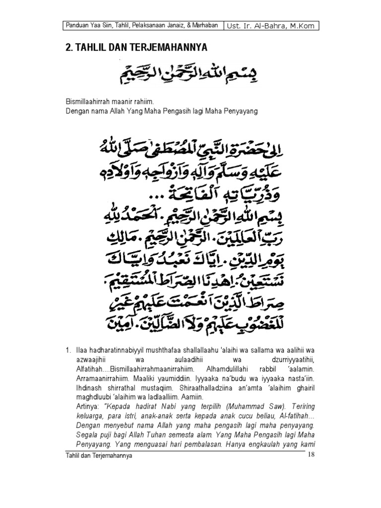 79 79 found this document useful mark this document as useful. Bacaan tahlil secara umum dibaca dengan diawali surat yasin kemudian dilanjutkan dengan bacaan tahlil dan ditutup oleh doa tahlil. Ketika tahlilan sebelum membaca doa tahlil terlebih dahulu akan. Doa tahlil doa arwah doa selamat lengkap dalam pembahasan sekarang akan membahas bacaan doa tahlil arwah dan selamat dalam bahasa arab latin serta terjemahan artinya.