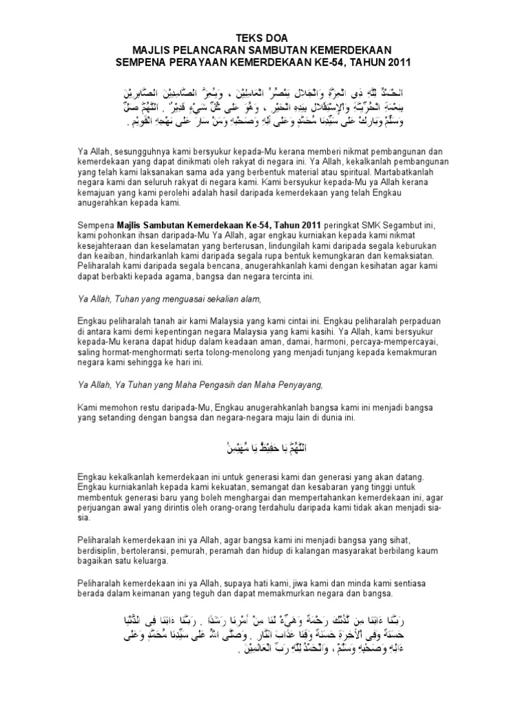 Teks Doa Majlis Pelancaran Sambutan Bulan Kemerdekaan