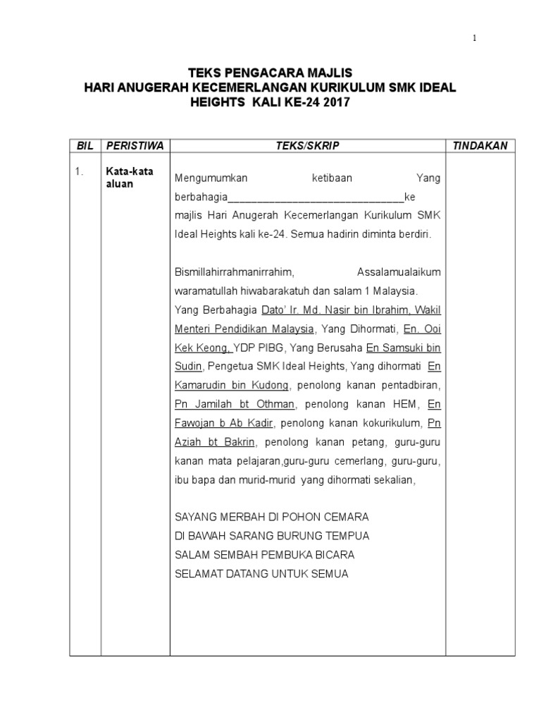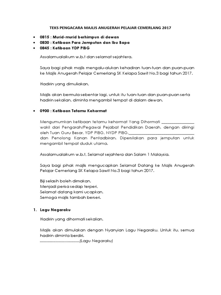 Date uploaded on thu 17 oct 2019 uploaded by. Teks pengacara hari anugerah cemerlang akademik. 9 00 1 00 petang. Majlis dengan segala takzimnya mempersilakan.