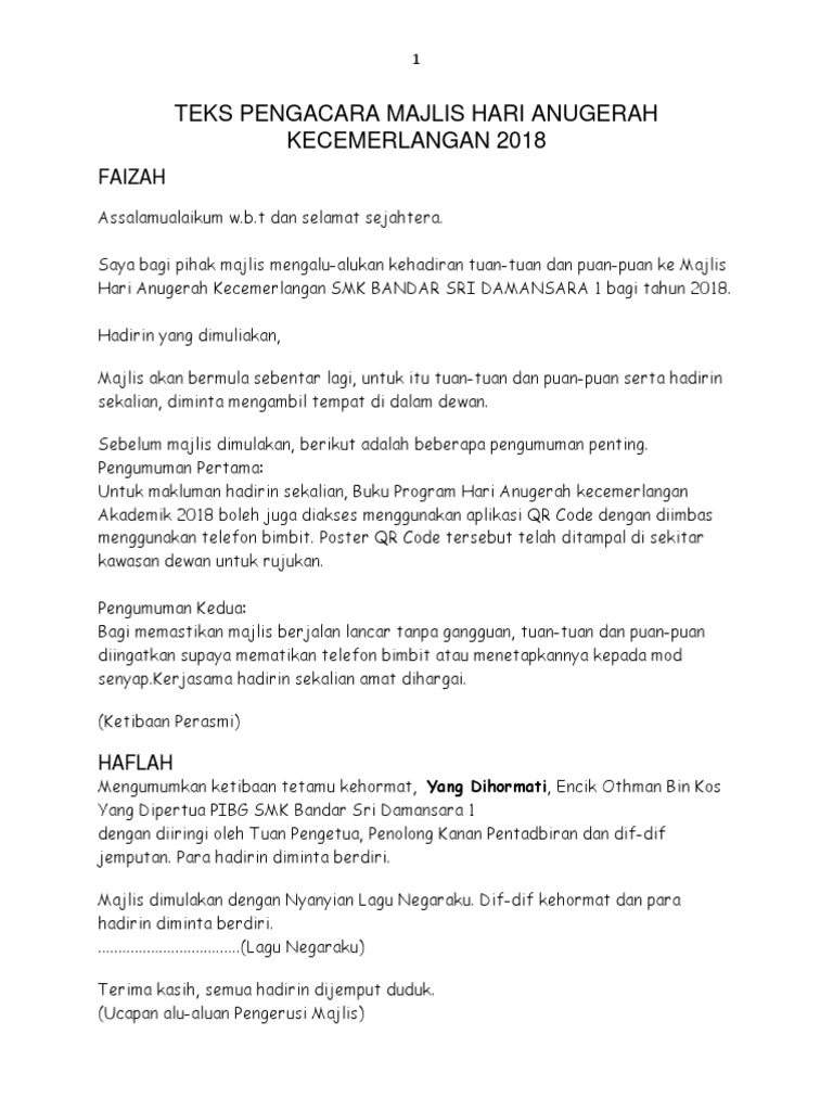 Teks Mc Majlis Anugerah Kecemerlangan 2018 Docx