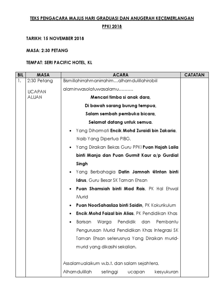 Teks Pengacara Majlis Hari Graduasi Dan Anugerah Kecemerlangan Ppki 2018