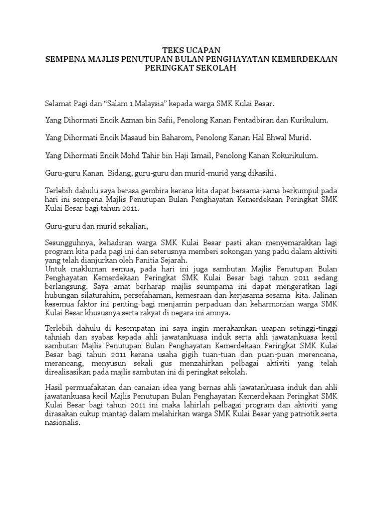 Teks Ucapan Penutup Merdeka 2018