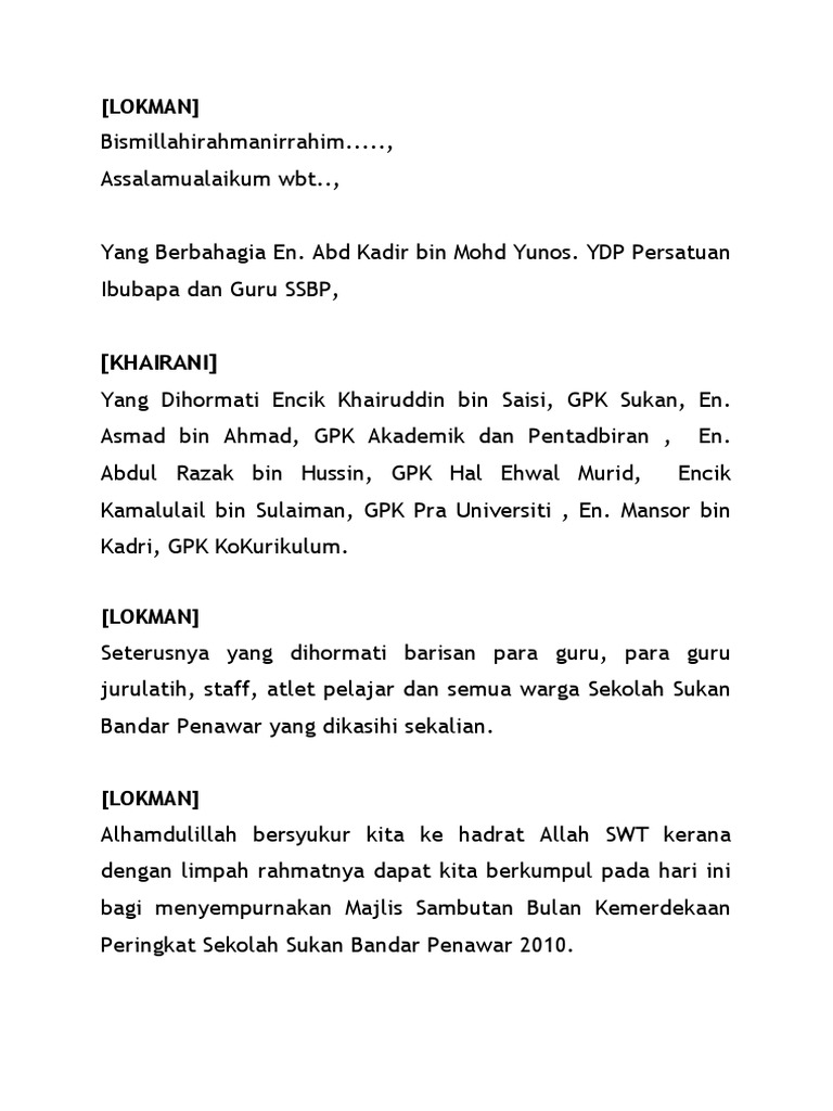 Teks Sambutan Hari Kemerdekaan Peringkat Sekolah