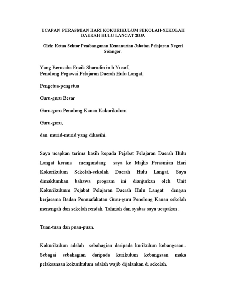 Ucapan Perasmian Hari Kokurikulum Sekolah