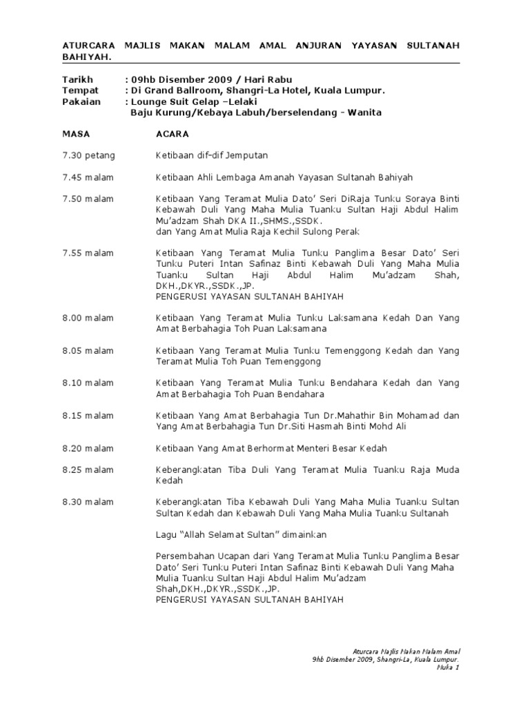Makan Malam Amal Ukp Aturcara Majlis
