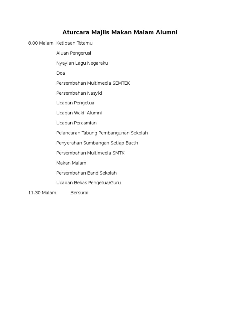5 Aturcara Majlis Makan Malam Alumni