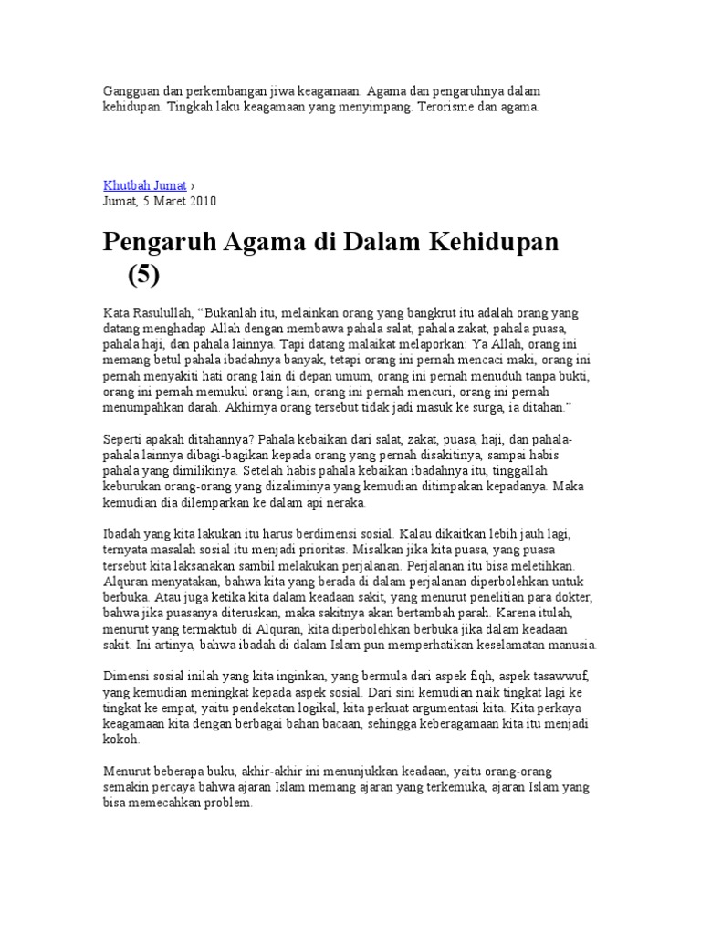 Pengaruh Agama Di Dalam Kehidupan 5 Khutbah Jumat