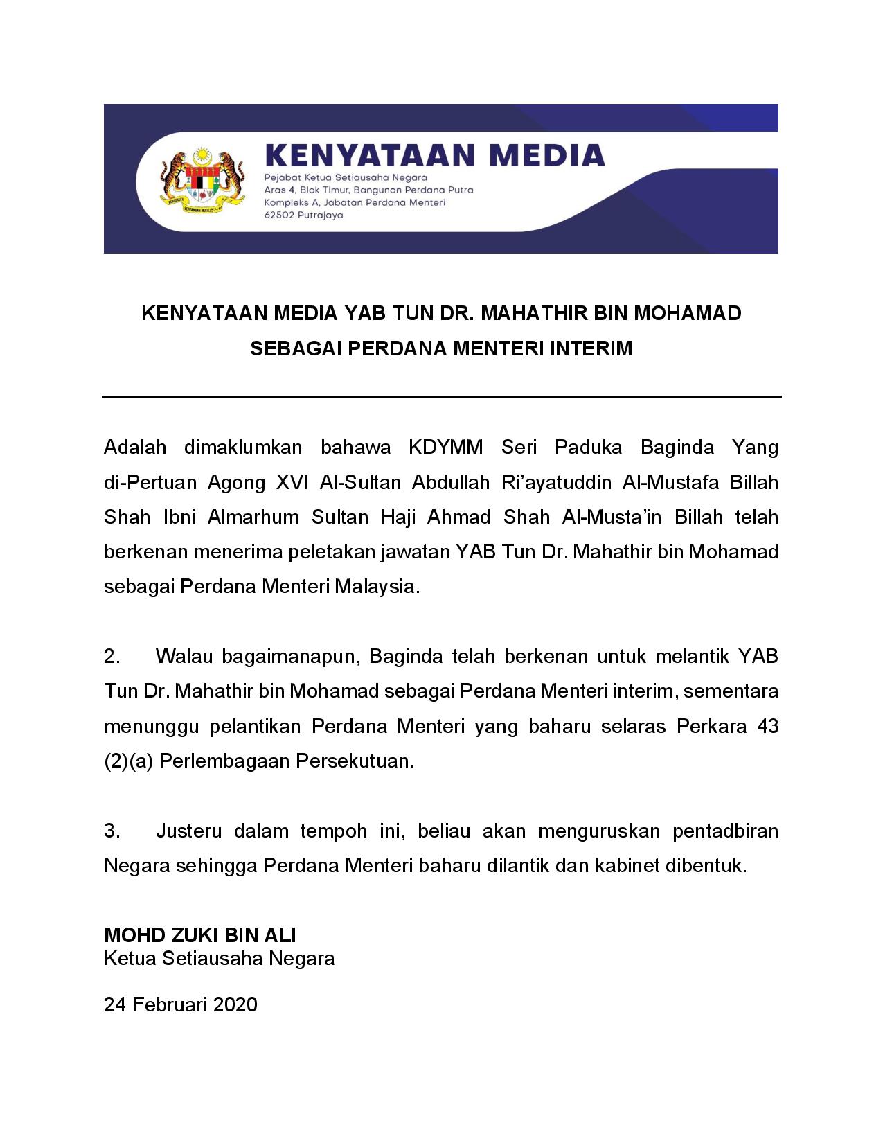 Informasi Wilayah A Twitter Kenyataan Media Yab Tun Dr Mahathir Bin Mohamad Sebagai Perdana Menteri Interim Kwpmalaysia
